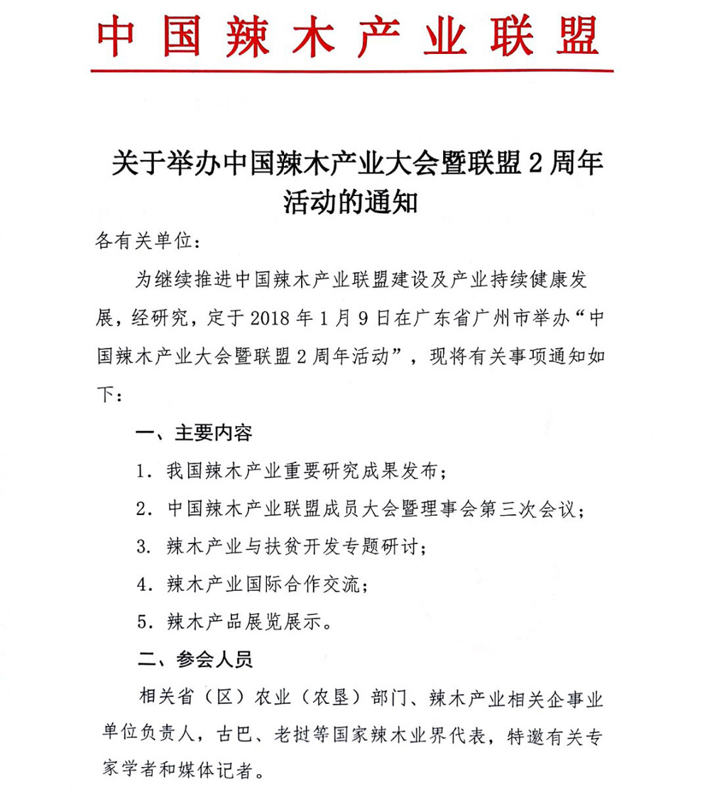 【辣木聯(lián)盟與大會(huì)】關(guān)于舉辦中國(guó)辣木產(chǎn)業(yè)大會(huì)暨聯(lián)盟2周年活動(dòng)的通知