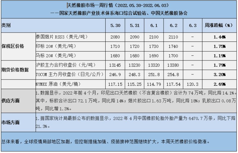 天然橡膠、大豆、玉米市場一周行情(2022.05.30-06.03)