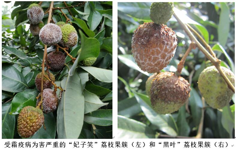 荔枝霜疫?。óa(chǎn)區(qū)也稱霜疫霉病或霜霉?。┦俏覈?guó)除海南外其它主產(chǎn)區(qū)的最主要病害,在荔枝果實(shí)轉(zhuǎn)色至成熟采摘階段,如遇雨天最易發(fā)生流行,可造成大量的荔枝果實(shí)腐爛、脫落(見下圖)。近期,廣西、珠三角及以北地區(qū)出現(xiàn)新一輪強(qiáng)降水,荔枝病蟲害監(jiān)測(cè)站調(diào)查發(fā)現(xiàn),荔枝霜疫病在各產(chǎn)區(qū)不同程度發(fā)生,少數(shù)果園病果率在15%以上。據(jù)中國(guó)天氣網(wǎng)最新預(yù)報(bào):未來10天,我國(guó)江南、華南、西南地區(qū)東部及江漢等地降雨量將達(dá)到50—100毫米,部分地區(qū)達(dá)到120—180毫米,局地超過250毫米,降雨量較常年同期偏多3—6成。這將加重荔枝霜疫病的發(fā)生與流行。對(duì)此,專家建議荔枝主產(chǎn)區(qū)監(jiān)測(cè)站和生產(chǎn)管理部門應(yīng)密切關(guān)注本地區(qū)天氣變化,加強(qiáng)監(jiān)測(cè)與應(yīng)對(duì),指導(dǎo)荔枝種植者做好防控工作。