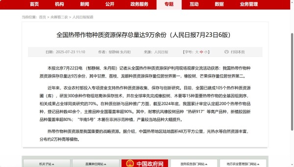 農(nóng)墾中心與海南省農(nóng)墾投資控股集團(tuán)共同主辦2025年中國國際熱作產(chǎn)業(yè)大會(huì),人民日?qǐng)?bào)、新華社、農(nóng)民日?qǐng)?bào)等媒體宣傳報(bào)道。