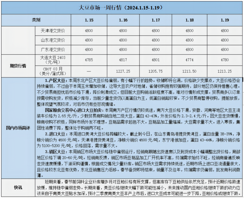 天然橡膠、大豆、玉米市場一周行情(2024.1.15-1.19)