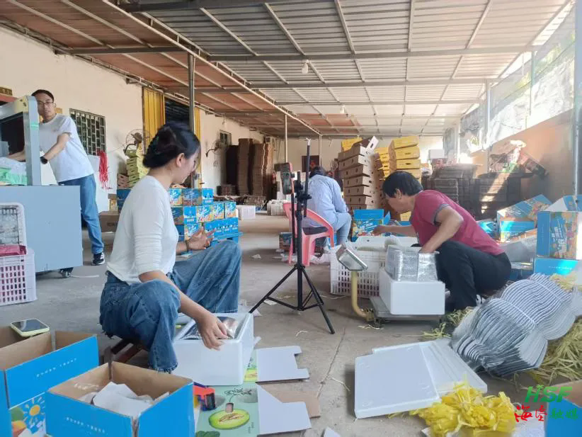 1月15日,在三亞海棠區(qū)南田路的一處芒果分揀基地內(nèi),工人們正熟練地將金黃飽滿的芒果分揀、打包,兩名電商主播在一旁對著鏡頭熱情地推介。當(dāng)前,海墾神泉集團(tuán)的早熟芒果已進(jìn)入銷售高峰期,每天都有新鮮的芒果從這里發(fā)往全國各地。