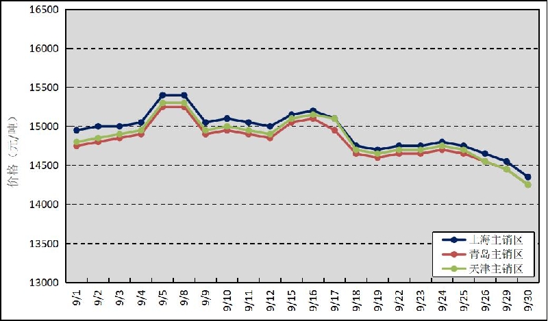 圖3  2025年9月國內(nèi)主銷區(qū)天然橡膠價格走勢