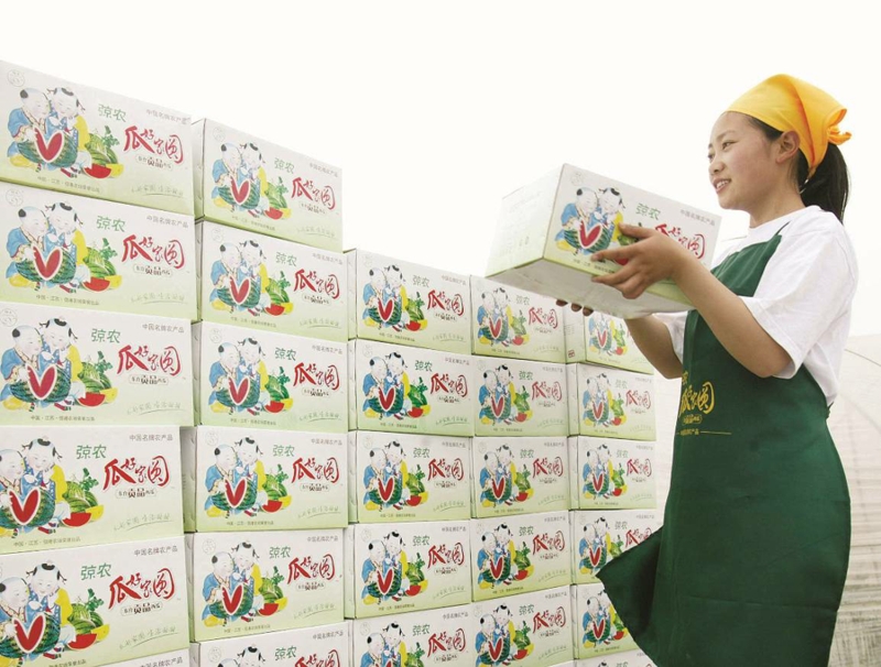 農(nóng)場(chǎng)黨委以問(wèn)題為導(dǎo)向,成立西瓜產(chǎn)業(yè)發(fā)展領(lǐng)導(dǎo)小組,確立西瓜產(chǎn)業(yè)總體發(fā)展思路,將大棚西瓜的年種植面積穩(wěn)定在1萬(wàn)畝左右,同一塊土地間隔4~5年種植一次大棚西瓜。“水旱輪作種植”模式不僅西瓜品質(zhì)、產(chǎn)量上去了,而且病蟲(chóng)害少了,土壤結(jié)構(gòu)改善了。協(xié)會(huì)制定并下發(fā)了標(biāo)準(zhǔn)化技術(shù)規(guī)程、《無(wú)公害、綠色西瓜生產(chǎn)手冊(cè)》,出臺(tái)了“關(guān)于加強(qiáng)環(huán)境保護(hù)建設(shè)生態(tài)農(nóng)場(chǎng)工作的意見(jiàn)” 和“關(guān)于做好無(wú)公害、綠色農(nóng)產(chǎn)品質(zhì)量追溯工作的意見(jiàn)”。西瓜產(chǎn)業(yè)從低水平、無(wú)序化的一家一戶式生產(chǎn)向組織化、規(guī)?;?biāo)準(zhǔn)化、無(wú)公害、綠化、有機(jī)農(nóng)產(chǎn)品生產(chǎn)邁進(jìn)。2002年注冊(cè)了“弶農(nóng)”牌商標(biāo),2008年獲得“中國(guó)名牌農(nóng)產(chǎn)品”、“江蘇名牌產(chǎn)品”等榮譽(yù)稱(chēng)號(hào),“弶農(nóng)”牌西瓜步入品牌化發(fā)展階段。2020年“弶農(nóng)”牌西瓜成功獲批江蘇省首批“江蘇精品”。