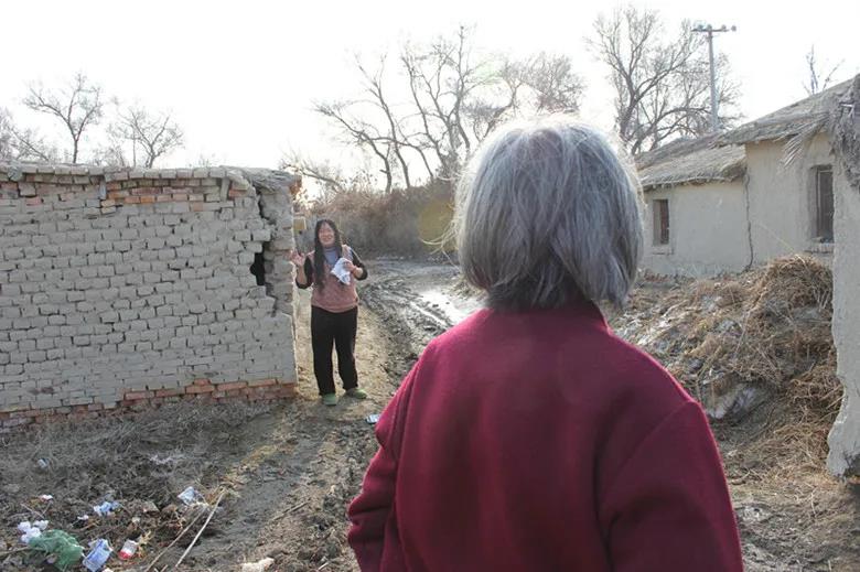 老人將要離去,她在向遠(yuǎn)處的女兒告別。