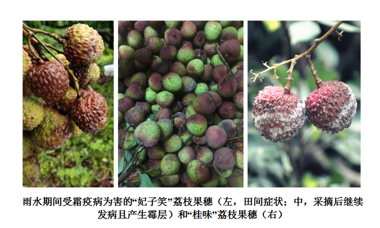 專家組建議,對可采收的果園,應(yīng)搶在強(qiáng)降雨到來前采收。對接近采收或轉(zhuǎn)色期果園,在確保食品安全情況下,可噴藥防治;如遇持續(xù)陰雨天氣,應(yīng)搶晴噴藥或補(bǔ)噴。鑒于目前高濕且溫度較高天氣也會引起荔枝炭疽病發(fā)生流行,專家建議噴施兼防荔枝霜疫病和炭疽病的復(fù)配殺菌劑,如60%唑酯•代森聯(lián)水分散粒劑1000—1500倍、68%精甲霜•錳鋅水分散粒劑600-800倍、72%霜脲錳鋅可濕性粉劑600—800倍。