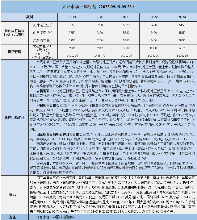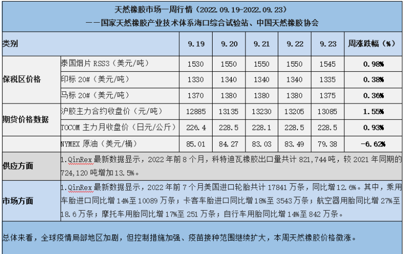 天然橡膠、大豆、玉米市場(chǎng)一周行情(2022.09.19-09.23)