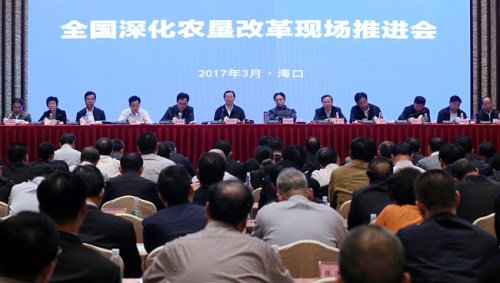 3月26日,農(nóng)業(yè)部在??谑姓匍_深化農(nóng)墾改革現(xiàn)場(chǎng)推進(jìn)會(huì),考察學(xué)習(xí)海南省積極有效推進(jìn)農(nóng)墾改革的好經(jīng)驗(yàn)好做法,對(duì)全國農(nóng)墾改革落實(shí)工作進(jìn)行再動(dòng)員再部署再推動(dòng)。農(nóng)業(yè)部部長韓長賦、海南省委書記羅保銘出席會(huì)議并講話。韓長賦強(qiáng)調(diào),各級(jí)農(nóng)墾部門要深入學(xué)習(xí)習(xí)近平總書記、李克強(qiáng)總理等中央領(lǐng)導(dǎo)同志有關(guān)深化農(nóng)墾改革重要指示精神,把思想和行動(dòng)真正統(tǒng)一到中央的決策部署上來,下定決心、堅(jiān)定信心,真抓實(shí)干、攻堅(jiān)克難,既當(dāng)改革促進(jìn)派,又當(dāng)改革實(shí)干家,堅(jiān)定不移將農(nóng)墾改革推向深入,如期完成中央部署的各項(xiàng)改革任務(wù),不斷開創(chuàng)農(nóng)墾事業(yè)發(fā)展新局面,以優(yōu)異成績迎接黨的十九大勝利召開。