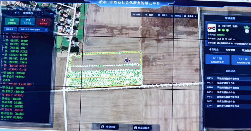 在老河口市農(nóng)業(yè)社會(huì)化服務(wù)中心,代表們仔細(xì)觀摩了當(dāng)?shù)刂腔墼破脚_(tái)實(shí)時(shí)監(jiān)控系統(tǒng)。通過(guò)該系統(tǒng)的“天眼”,不僅能實(shí)時(shí)知曉系統(tǒng)內(nèi)185臺(tái)農(nóng)業(yè)機(jī)械的作業(yè)軌跡,還能全時(shí)掌握土壤墑情、病蟲害預(yù)警等重要信息,為農(nóng)業(yè)社會(huì)化服務(wù)提供科學(xué)的數(shù)據(jù)支撐。