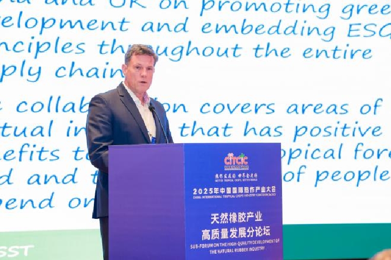 中英合作國(guó)際林業(yè)投資與貿(mào)易項(xiàng)目(InFit)主管與戰(zhàn)略總監(jiān)Patrick Abbot指出,天然橡膠產(chǎn)業(yè)發(fā)展不僅為全球工業(yè)提供優(yōu)質(zhì)原料,更為種植戶(hù)帶來(lái)穩(wěn)定生計(jì)保障,中國(guó)憑借應(yīng)對(duì)國(guó)內(nèi)外挑戰(zhàn)、解決全球問(wèn)題的堅(jiān)定承諾與巨大潛力,有望通過(guò)深化天然橡膠綠色供應(yīng)鏈,成為推動(dòng)全球森林可持續(xù)管理的關(guān)鍵力量。