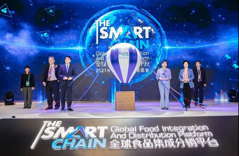 嘉賓們共同啟動(dòng)熱氣球,光明食品集團(tuán)“THE SMART CHAIN全球食品集成分銷平臺(tái)”正式開(kāi)幕。