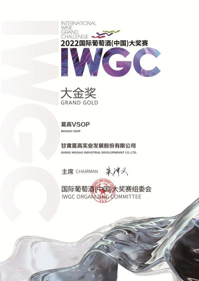 近日,2022國際葡萄酒(中國)大獎賽(IWGC)榜單發(fā)布,莫高VSOP喜獲大金獎,向世界展示了“一瓶好葡萄酒的中國標(biāo)準(zhǔn)”。