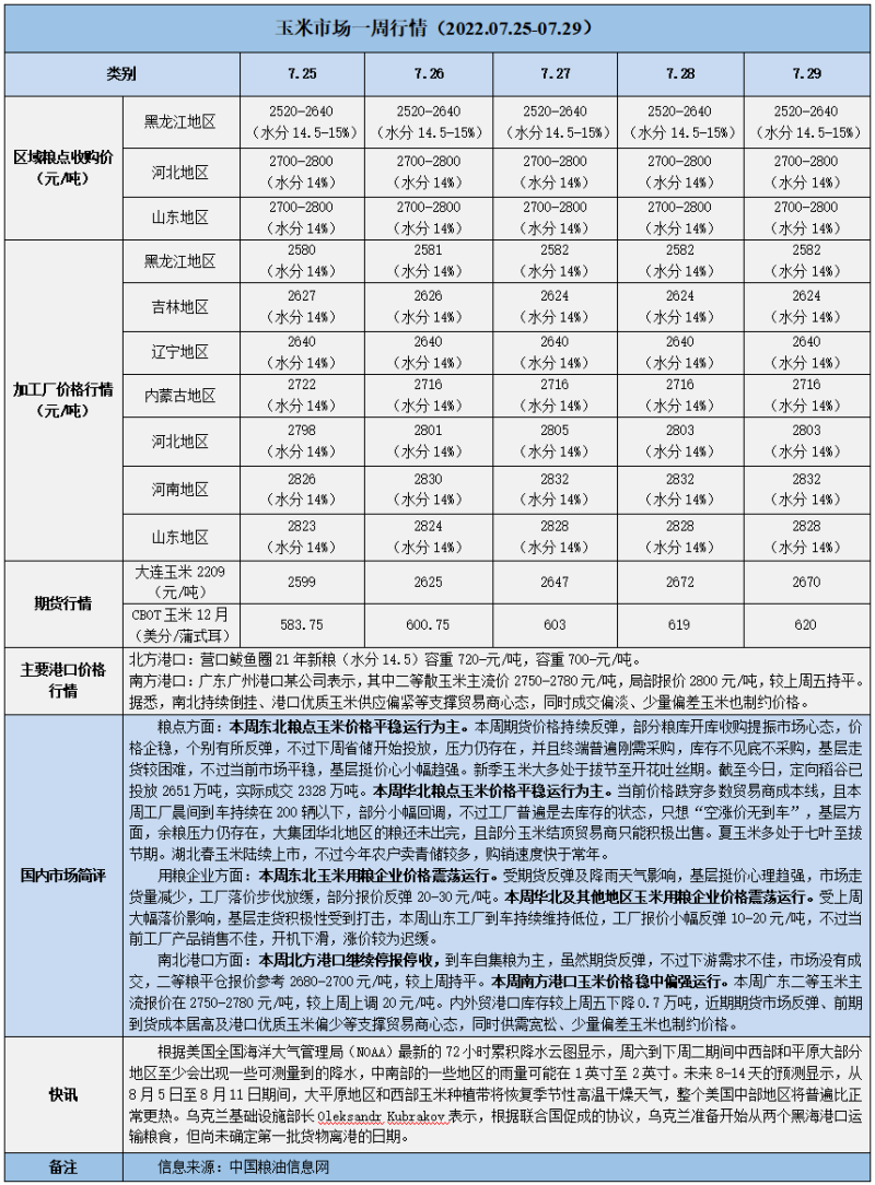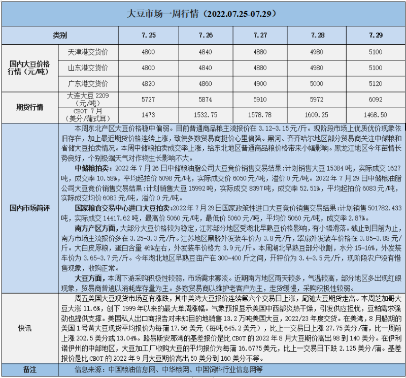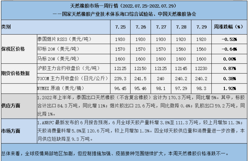 天然橡膠、大豆、玉米市場一周行情(2022.07.25-07.29)
