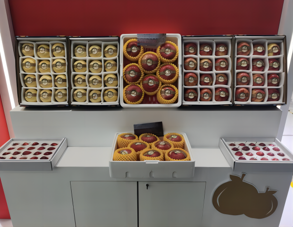 產(chǎn)品特色:“王鳳臺”紅富士:果面潔凈、色澤艷麗、品質(zhì)優(yōu)良。果實為大型果,平均單果重180-300克。果實多為扁圓形,果形指數(shù)0.8左右,少數(shù)果近圓形。果皮光滑,有光澤,中厚而韌,蠟質(zhì)中多。套袋成熟果實果面鮮紅色霞或條霞。果點圓形,較明顯,中大,較密,陽面果點黃白色,陰面果點黃色。果肉黃白色,致密,細脆多汁,有清香,酸甜適口。王鳳臺蘋果可溶性固形物含量不低于14.5%,酸含量在0.2%—0.3%,果實硬度8.5kg/cm2~11kg/cm2。10月中下旬成熟既可鮮食,亦可加工成果脯、果干、罐頭、果酒及果醬等。蘋果的耐貯性非常好,貯藏后伴有香氣,可貯至翌年六月。