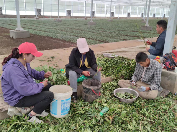 當(dāng)?shù)剞r(nóng)牧民在苗圃中作業(yè)