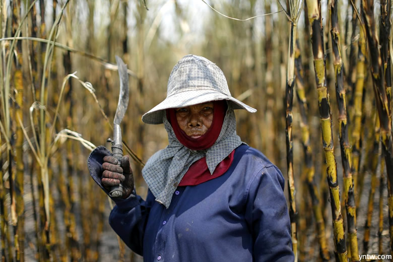 泰國Ratchaburi 省一名蔗農(nóng)勞作時(shí)給記者擺拍(Reuters)