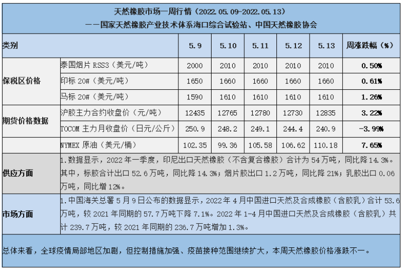 天然橡膠、大豆、玉米市場(chǎng)一周行情(2022.05.09-05.13)