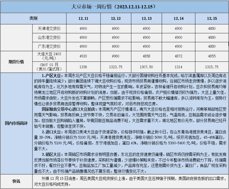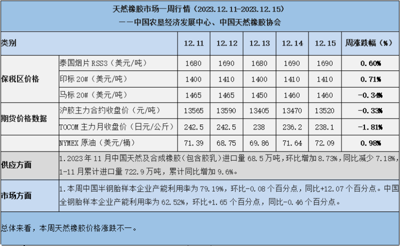 天然橡膠、大豆、玉米市場(chǎng)一周行情(2023.12.11-12.15)