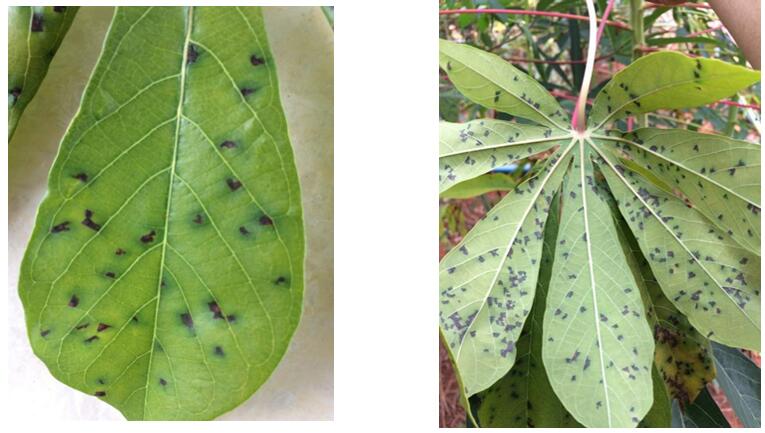 1.木薯封行前注意控草:田間雜草過密容易導(dǎo)致病害發(fā)生嚴(yán)重。控草可采用除草劑和人工除草,除草劑建議使用草銨膦或草甘膦,在噴施過程中注意防護(hù)木薯葉片,預(yù)防產(chǎn)生藥害。