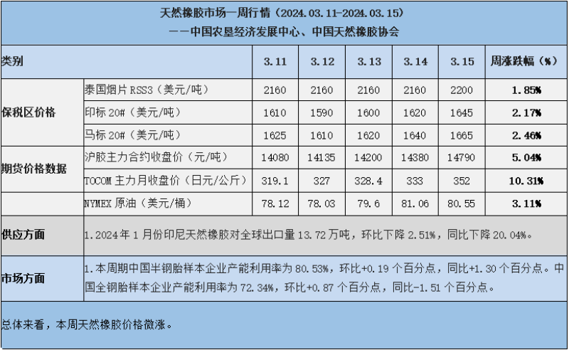 天然橡膠、大豆、玉米市場(chǎng)一周行情(2024.03.11-03.15)