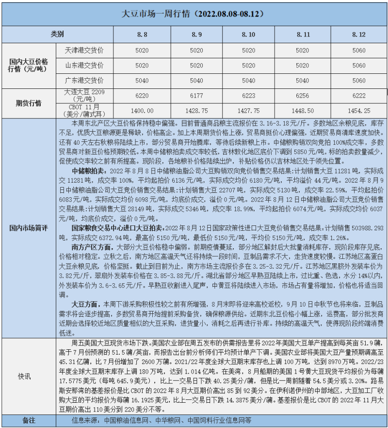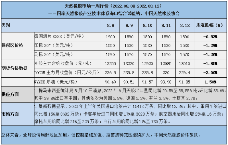 天然橡膠、大豆、玉米市場一周行情(2022.08.08-08.12)