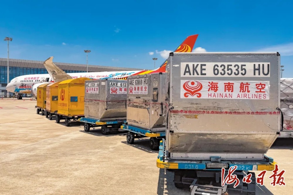5月21日,海南妃子笑荔枝搭乘HU7911(???倫敦)航班前往倫敦。??谑腥诿襟w中心記者蘇弼坤 通訊員李耀樂 攝