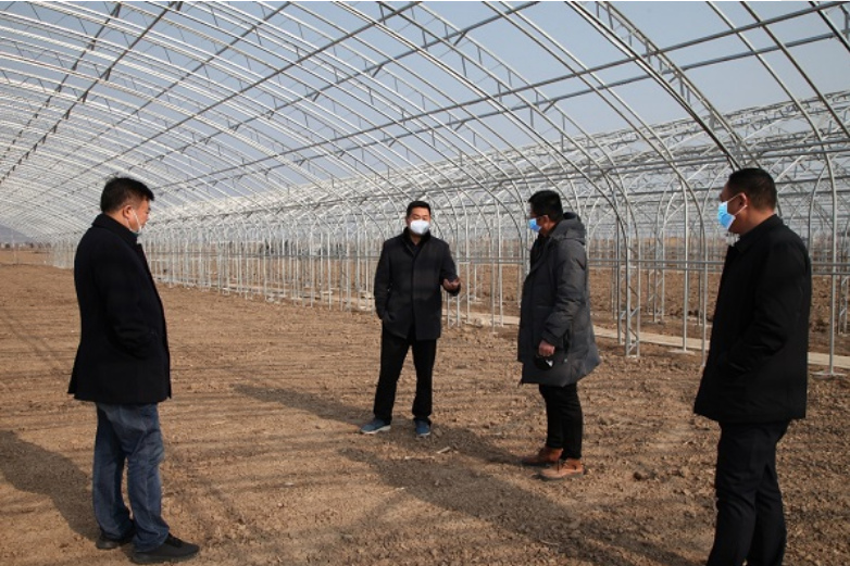 圖為云臺農(nóng)場公司主要負(fù)責(zé)人現(xiàn)場檢查疫情防控期間企業(yè)復(fù)工情況