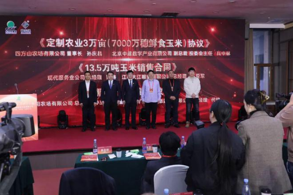此次推介會(huì),哈爾濱有限公司以資源資產(chǎn)、文化旅游、品牌建設(shè)和產(chǎn)業(yè)配套等方面為主要內(nèi)容,對(duì)“和農(nóng)場(chǎng)”品牌產(chǎn)品、“四區(qū)”建設(shè)及資源資產(chǎn)一體化、農(nóng)文旅融合發(fā)展一體化平臺(tái)產(chǎn)業(yè)、賓館產(chǎn)業(yè)集群及洗滌工廠進(jìn)行推介,并與黑龍江省企業(yè)發(fā)展促進(jìn)會(huì)、北京中健數(shù)字產(chǎn)業(yè)有限公司、黑龍江省體育旅游融合發(fā)展促進(jìn)會(huì)等72家企業(yè)及商會(huì)簽訂了《定制農(nóng)業(yè)3萬(wàn)畝(7000萬(wàn)穗鮮食玉米)協(xié)議》《13.5萬(wàn)噸玉米銷(xiāo)售合同》《黑稻產(chǎn)業(yè)供銷(xiāo)協(xié)議》《農(nóng)文旅融合發(fā)展促進(jìn)協(xié)議》《快消品銷(xiāo)售協(xié)議》等協(xié)議。