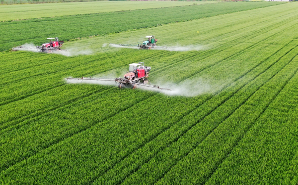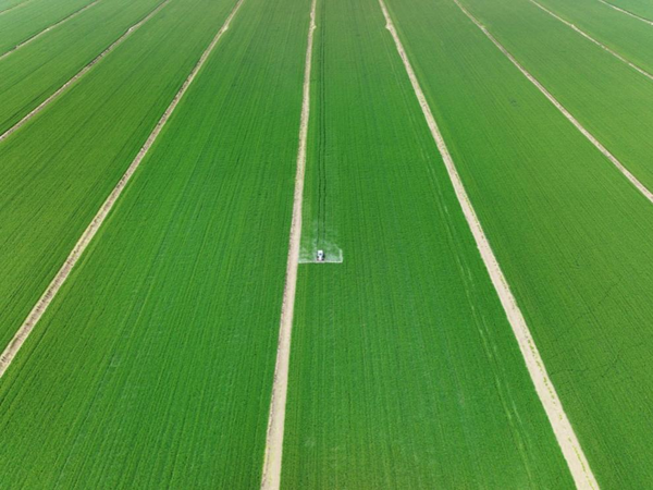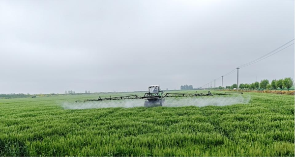 焦崗湖農(nóng)場搶抓雨后間隙,針對場內(nèi)不同播期的小麥,因時因地制宜開展“一噴三防”作業(yè),確保防治及時、無遺漏。(路 豪)