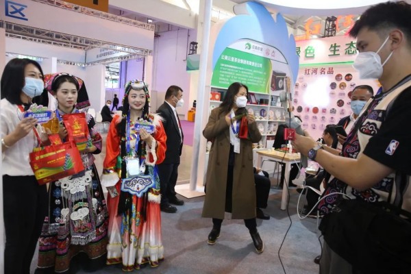 開幕當天,集團展位便吸引眾多網紅前來打卡,芳香四溢的“云花香”玫瑰、百合成為直播的“背景板”。主播們一邊介紹著云南的風土人情、特色美食,一邊拿起紅彤彤的“沁果昭紅”蘋果,品鑒著醇厚濃香的“云啡”咖啡,向網友推介著云南的區(qū)域果蔬和集團的特色商品,集團的銷售人員走進網紅直播間,推介集團綠色農產品。