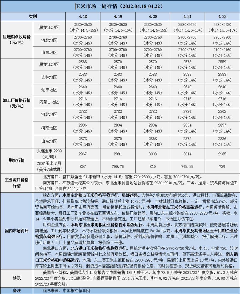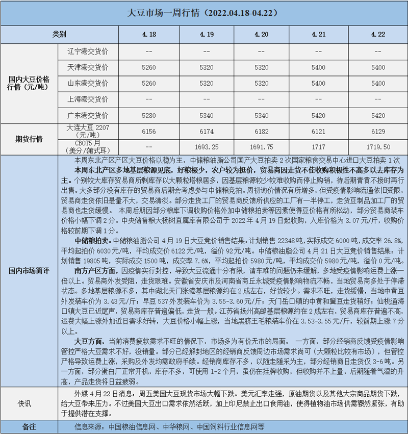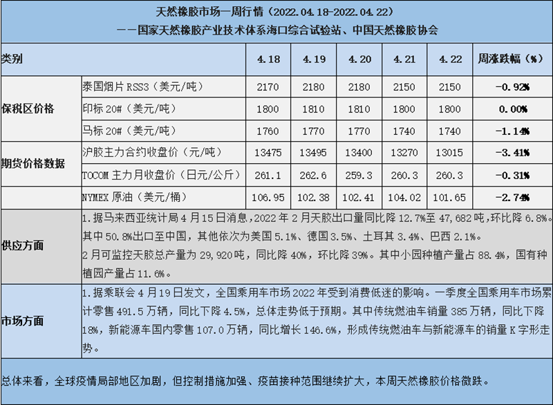 天然橡膠、大豆、玉米市場(chǎng)一周行情(2022.04.18-04.22)