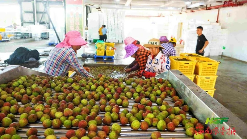 海墾紅明農(nóng)場公司擁有全國最大的荔枝鮮果交易中心,可為客商提供分揀、打包裝箱、冷鏈倉儲物流、冰袋等一體化服務(wù)。許雅 攝
