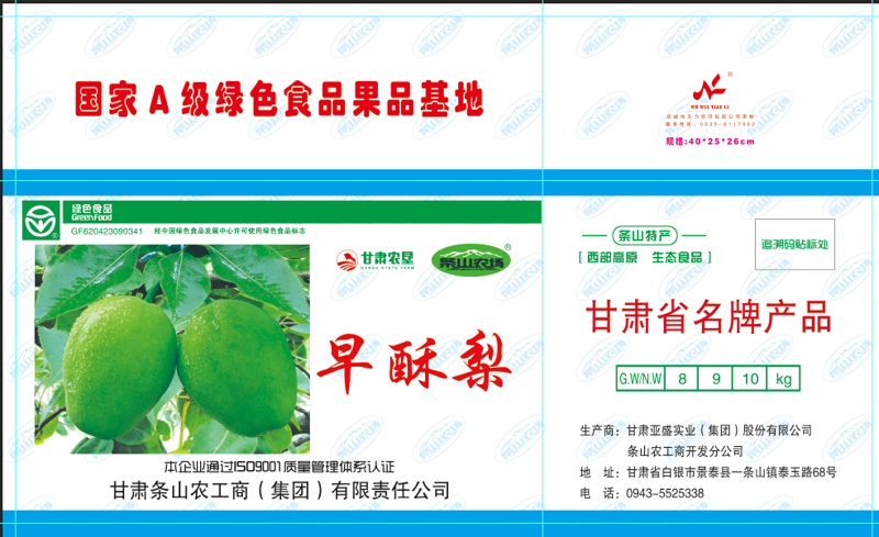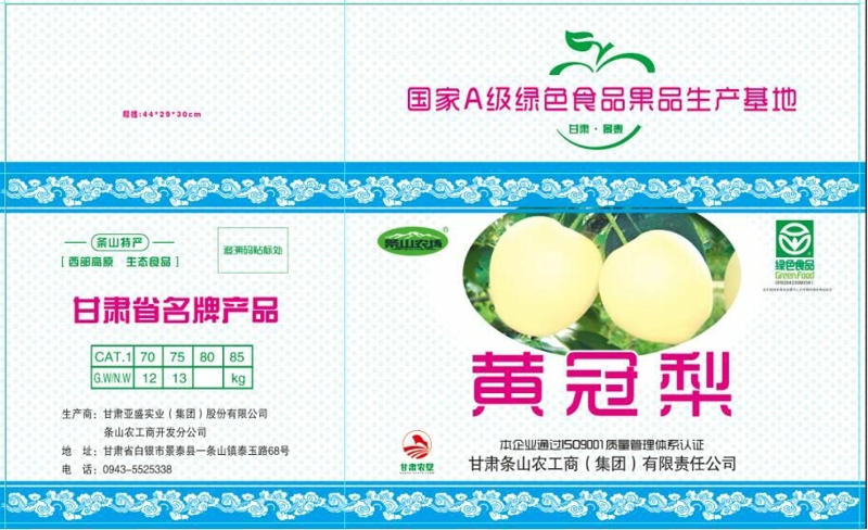 條山農(nóng)場從1993年開始實施綠色食品的生產(chǎn)與認證的基礎性工作,先后有啤酒大麥、啤酒花、大接杏、早酥梨、黃金梨、黃冠梨、紅富士蘋果、馬鈴薯、洋蔥、枸杞、杏醬、番茄醬等12個產(chǎn)品被中國綠色食品發(fā)展中心認定為綠色食品;林果基地被認定為國家A級綠色食品果品生產(chǎn)基地,被國家標準化管理委員會批準為國家級農(nóng)業(yè)標準化早酥梨種植示范區(qū)。隨著產(chǎn)業(yè)結(jié)構調(diào)整,目前已成規(guī)?;a(chǎn)業(yè)化發(fā)展的綠色食品有“條山牌”早酥梨、黃冠梨、大接杏、紅富士蘋果、加工型馬鈴薯5個產(chǎn)品;早酥梨、黃冠梨通過有機食品認證;馬鈴薯、果品通過了出口產(chǎn)品基地備案認證,果品包裝獲得出口注冊登記;條山梨被認定為國家地理標志產(chǎn)品;條山牌榮獲“2015中國十大梨品牌”和“2015中國果品百強品牌”稱號;早酥梨蟬聯(lián)中國綠色食品博覽會金獎、榮獲2017甘肅農(nóng)業(yè)博覽會金獎;黃冠梨、早酥梨榮獲2017年甘肅名牌產(chǎn)品稱號;“條山”牌早酥梨入選“甘味”農(nóng)產(chǎn)品企業(yè)商標品牌名錄。建成了高標準的綠色食品果品基地1萬畝(有機果品1061.1畝)、馬鈴薯基地場內(nèi)場外各1萬畝,輻射帶動周邊市縣發(fā)展林果業(yè)30萬畝。