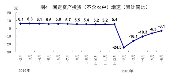 上半年,全國(guó)固定資產(chǎn)投資(不含農(nóng)戶)281603億元,同比下降3.1%,降幅比1-5月份收窄3.2個(gè)百分點(diǎn),比一季度收窄13.0個(gè)百分點(diǎn)。分領(lǐng)域看,基礎(chǔ)設(shè)施投資下降2.7%,制造業(yè)投資下降11.7%,降幅比一季度分別收窄17.0、13.5個(gè)百分點(diǎn);房地產(chǎn)開發(fā)投資增長(zhǎng)1.9%,一季度為下降7.7%。全國(guó)商品房銷售面積69404萬(wàn)平方米,下降8.4%;商品房銷售額66895億元,下降5.4%,降幅比一季度分別收窄17.9、19.3個(gè)百分點(diǎn)。分產(chǎn)業(yè)看,第一產(chǎn)業(yè)投資增長(zhǎng)3.8%,一季度為下降13.8%;第二產(chǎn)業(yè)投資下降8.3%,第三產(chǎn)業(yè)投資下降1.0%,降幅比一季度分別收窄13.6、12.5個(gè)百分點(diǎn)。民間投資157867億元,下降7.3%,降幅比一季度收窄11.5個(gè)百分點(diǎn)。高技術(shù)產(chǎn)業(yè)投資增長(zhǎng)6.3%,一季度為下降12.1%;其中高技術(shù)制造業(yè)和高技術(shù)服務(wù)業(yè)投資分別增長(zhǎng)5.8%和7.2%。高技術(shù)制造業(yè)中,醫(yī)藥制造業(yè)、計(jì)算機(jī)及辦公設(shè)備制造業(yè)投資分別增長(zhǎng)13.6%、8.2%;高技術(shù)服務(wù)業(yè)中,電子商務(wù)服務(wù)業(yè)、科技成果轉(zhuǎn)化服務(wù)業(yè)投資分別增長(zhǎng)32.0%、21.8%。社會(huì)領(lǐng)域投資增長(zhǎng)5.3%,一季度為下降8.8%;其中衛(wèi)生、教育投資分別增長(zhǎng)15.2%、10.8%,一季度為分別下降0.9%、4.0%。從環(huán)比看,6月份固定資產(chǎn)投資(不含農(nóng)戶)比上月增長(zhǎng)5.91%。