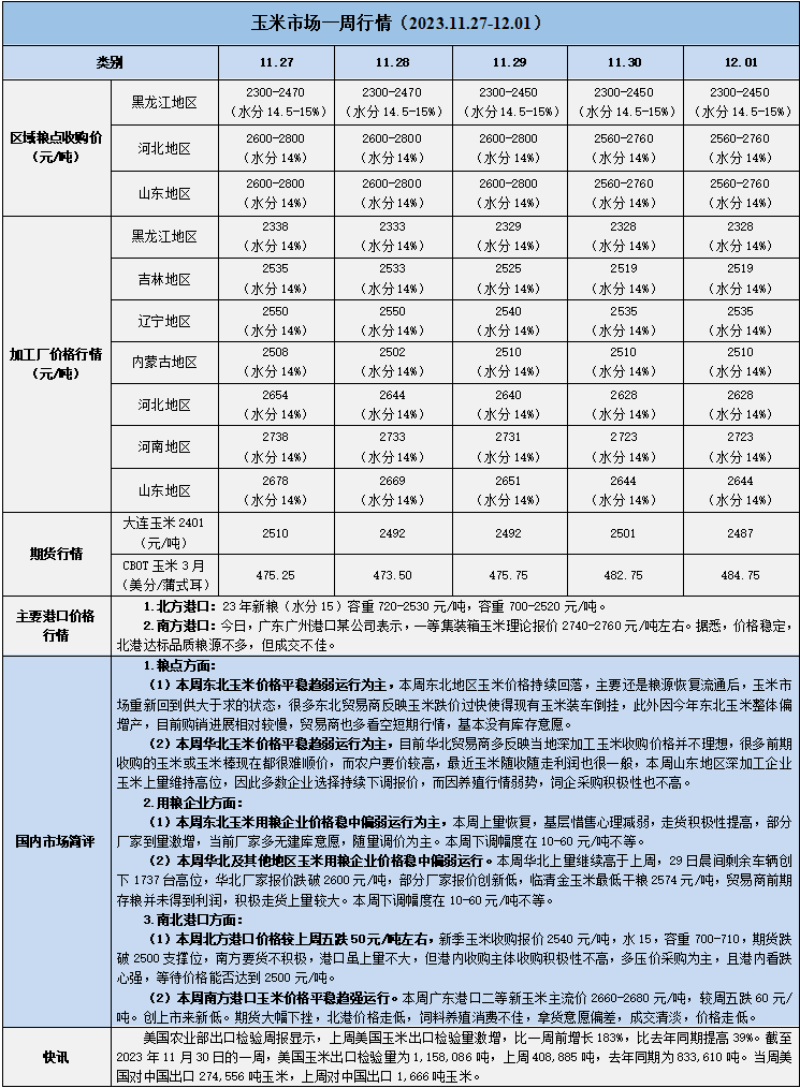 天然橡膠、大豆、玉米市場(chǎng)一周行情(2023.11.27-12.01)