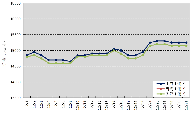 圖3 2025年12月國內(nèi)主銷區(qū)天然橡膠價格走勢