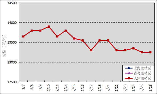 國內(nèi)主銷區(qū):2月,國產(chǎn)全乳標準膠上海市場平均價格13538元/噸,環(huán)比下跌274元/噸,最高價為13900元/噸,最低價為13250元/噸;青島市場平均價格13538元/噸,環(huán)比下跌271元/噸,最高價為13900元/噸,最低價為13250元/噸;天津市場平均價格13538元/噸,環(huán)比下跌271元/噸,最高價為13900元/噸,最低價為13250元/噸。