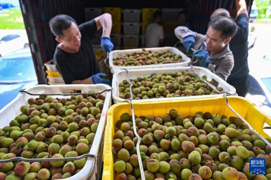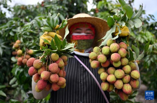 5月22日,農(nóng)民在海口市瓊山區(qū)三門坡鎮(zhèn)采摘荔枝。