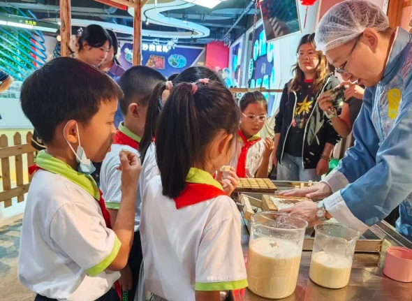在王致和科普館,學(xué)生們通過沉浸式體驗(yàn)腐乳制作的全過程,深入了解傳統(tǒng)腐乳釀造的非遺技藝。通過開展科普研學(xué)活動(dòng),讓傳統(tǒng)工藝“傳”在孩子的手心里、留在孩子的記憶中。始創(chuàng)于清康熙八年(1669年)的王致和,距今已有350余年歷史?!拔覀兊拿恳粔K腐乳,都要經(jīng)35道工序、歷百天醞釀變化才能來到消費(fèi)者手里。我們的研發(fā)和創(chuàng)新,都是在嚴(yán)守傳統(tǒng)工藝和流程的前提下進(jìn)行的優(yōu)化和提升?!蓖踔潞凸靖笨偨?jīng)理?xiàng)顒P介紹,作為國內(nèi)最大的腐乳生產(chǎn)企業(yè),王致和將300余年的腐乳釀造技藝與現(xiàn)代科技深度交融,通過現(xiàn)代工藝使得每一道加工工序都擺脫了“少量、差不多”的經(jīng)驗(yàn)性操作模式,不再單憑感官判定,工藝參數(shù)均得到了量化和標(biāo)準(zhǔn)化,有效地保證了產(chǎn)品品質(zhì)的穩(wěn)定性。