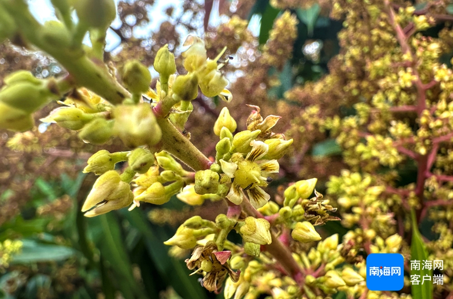 南海網2月18日訊(記者 劉孫謀)在三亞市崖城郎典村的芒果種植園里,可以看到金色芒果花在盛開,高處俯看下去,一片金黃浪花在擺動,滿山遍野全是芒果樹。作為國內重要的芒果產區(qū),海南的芒果產量占據全國總產量的30%左右。而在海南各市縣中,三亞的芒果種植面積和產量均位居榜首。果樹上掛滿紅彤彤的芒果,碩果累累的芒果將枝頭壓彎。
