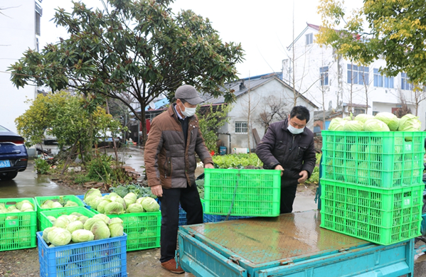 2月11日,在安徽農墾皖河農場三益蔬菜基地,工人們正在加大采摘蔬菜運往安慶三義蔬菜市場,擴大蔬菜供應量,當好安慶市“西菜園”。