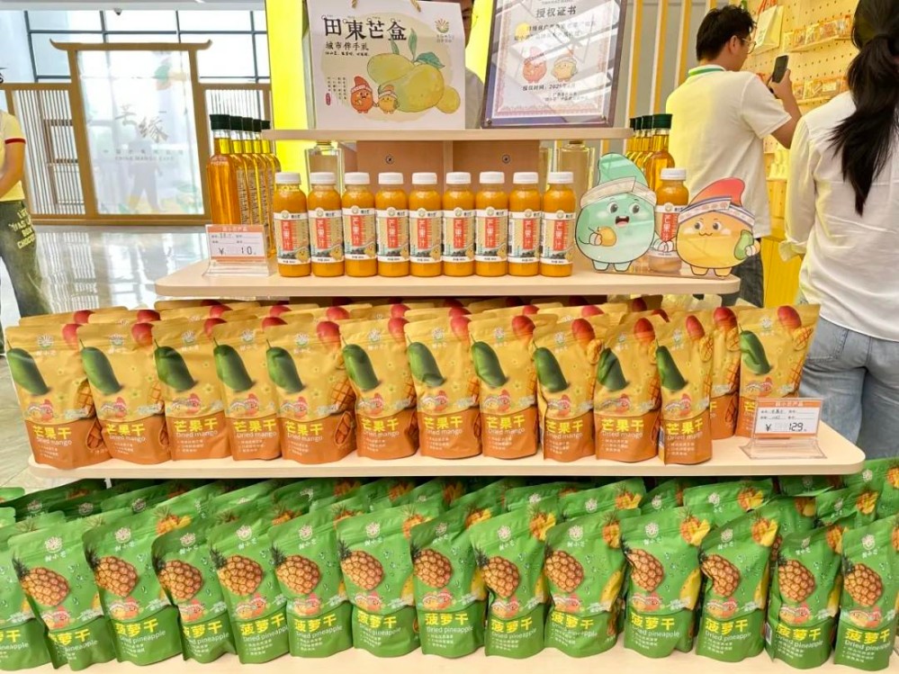 活動(dòng)中,百色12個(gè)縣(市、區(qū))農(nóng)特產(chǎn)品和文創(chuàng)產(chǎn)品,以及來自國(guó)家芒果種植資源圃的“熱品4號(hào)”“桂熱芒10號(hào)”“泰國(guó)金白花”等百余種芒果新品種(品系)集中亮相?!懊⒐N質(zhì)資源太神奇了,單單是種皮就有這么多顏色!”“芒果蘸辣椒面我還是第一次嘗試!”“甜小芒這個(gè)IP既有廣西的民族特色,又有農(nóng)業(yè)特色!”每個(gè)展位前都擠滿了觀眾,大家嘗味道、問價(jià)格,熱鬧非凡。