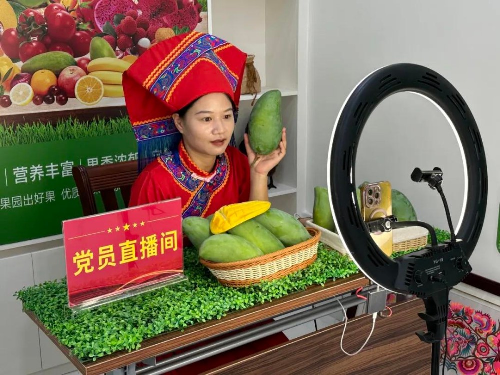 電商直播間,主播們對(duì)著鏡頭熱情地介紹著芒果產(chǎn)品,通過一根網(wǎng)線將豐收的喜悅傳遞給更多的人。