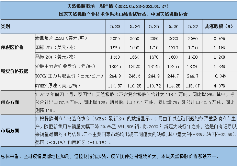 天然橡膠、大豆、玉米市場(chǎng)一周行情(2022.05.23-05.27)