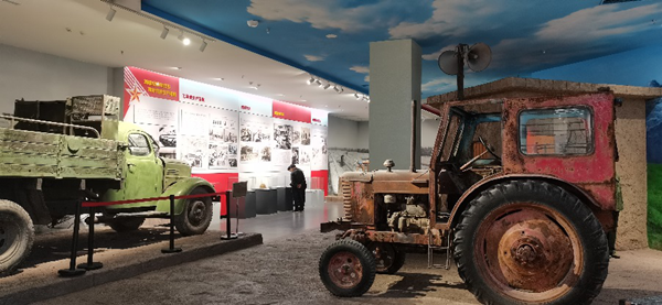 第五師“紅星耀雙河”陳列館位于第五師雙河市,2021年10月建成,展廳面積3100平方米,共6個(gè)廳:分為1個(gè)序廳,“西來(lái)異境、世外靈壤”“凱歌進(jìn)疆、屯墾戍邊”“時(shí)代召喚、再創(chuàng)輝煌”3個(gè)主展廳和“天國(guó)之享——南朝畫像磚藝術(shù)展”、“歲月失語(yǔ)、惟石能言——石文化”“漢畫像石拓片”3個(gè)臨時(shí)展廳,包含干打壘營(yíng)房、石文化(巖畫)等5個(gè)現(xiàn)場(chǎng)教學(xué)點(diǎn)(參觀點(diǎn)),展出軍墾文物1000件、雕塑3個(gè)、圖片760多張。
