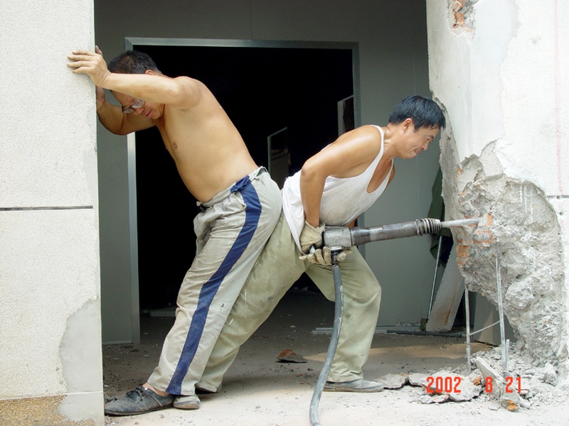 2002年公司組織員工自己動(dòng)手拆除舊廠房