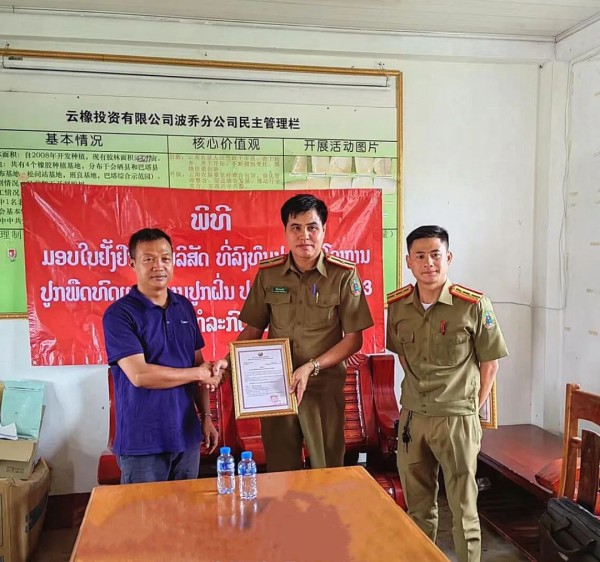 云橡投資有限公司波喬分公司負(fù)責(zé)人對老撾波喬省公安廳一直以來對公司工作的支持和幫助表示感謝,并將一如既往地履行好“替代種植”發(fā)展的責(zé)任,充分發(fā)揮技術(shù)、資金、人才的優(yōu)勢,為“金三角”罌粟替代種植區(qū)域老百姓提供更多的就業(yè)崗位,為老撾脫貧減貧貢獻(xiàn)新的更大力量,推動老撾天然橡膠產(chǎn)業(yè)持續(xù)健康發(fā)展。