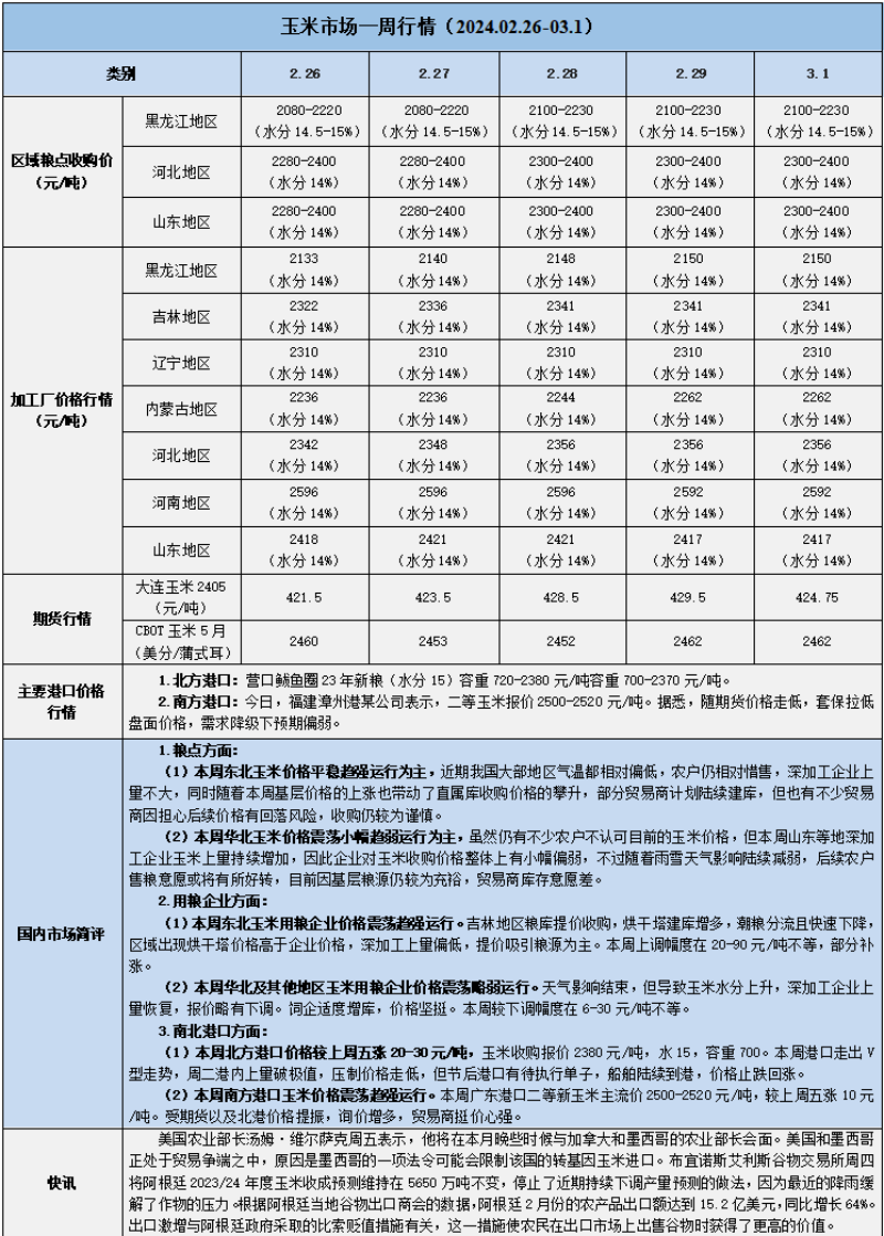天然橡膠、大豆、玉米市場一周行情(2024.02.26-03.01)