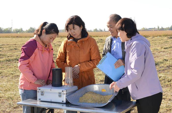 關(guān)二騰的大豆田位于新疆農(nóng)墾科學(xué)院與一四七團(tuán)共同打造的“新大豆 23 號”千畝高產(chǎn)創(chuàng)建示范田內(nèi)。9 月 19 日,來自中國農(nóng)業(yè)科學(xué)院、河北省農(nóng)林科學(xué)院、新疆農(nóng)業(yè)科學(xué)院、新疆農(nóng)業(yè)大學(xué)、兵團(tuán)農(nóng)業(yè)技術(shù)推廣總站的專家們組成專家組,進(jìn)行實收產(chǎn)量鑒定。在百畝方實打?qū)嵤?22.55 畝,平均畝產(chǎn) 439.17 公斤;千畝方實打?qū)嵤?163.98 畝,平均畝產(chǎn) 400.05 公斤。反復(fù)測算核對后,中國農(nóng)業(yè)科學(xué)院油料作物研究所研究員周新安宣布:“兵團(tuán)春大豆百畝方和千畝方單產(chǎn)雙雙創(chuàng)下全國紀(jì)錄,全國大豆大面積單產(chǎn)新紀(jì)錄誕生。”