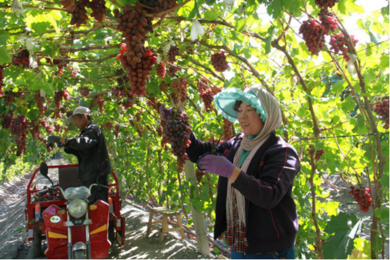 主要種植紅地球、弗雷、克瑞森、夏黑等4個(gè)葡萄品種。